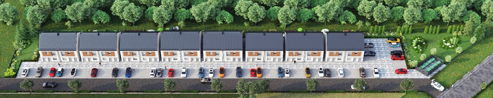 Mieszkania znajdują się w domach - bliźniakach – w każdym 4 mieszkania.