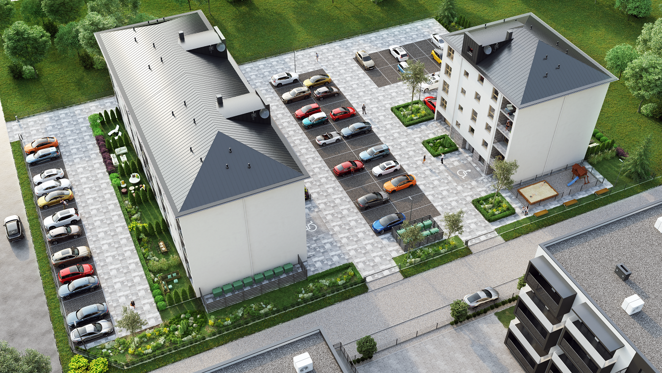Do każdego kupowanego mieszkania przynależy 1 miejce parkingowe na terenie osiedla (nie jest dodatkowo płatne).