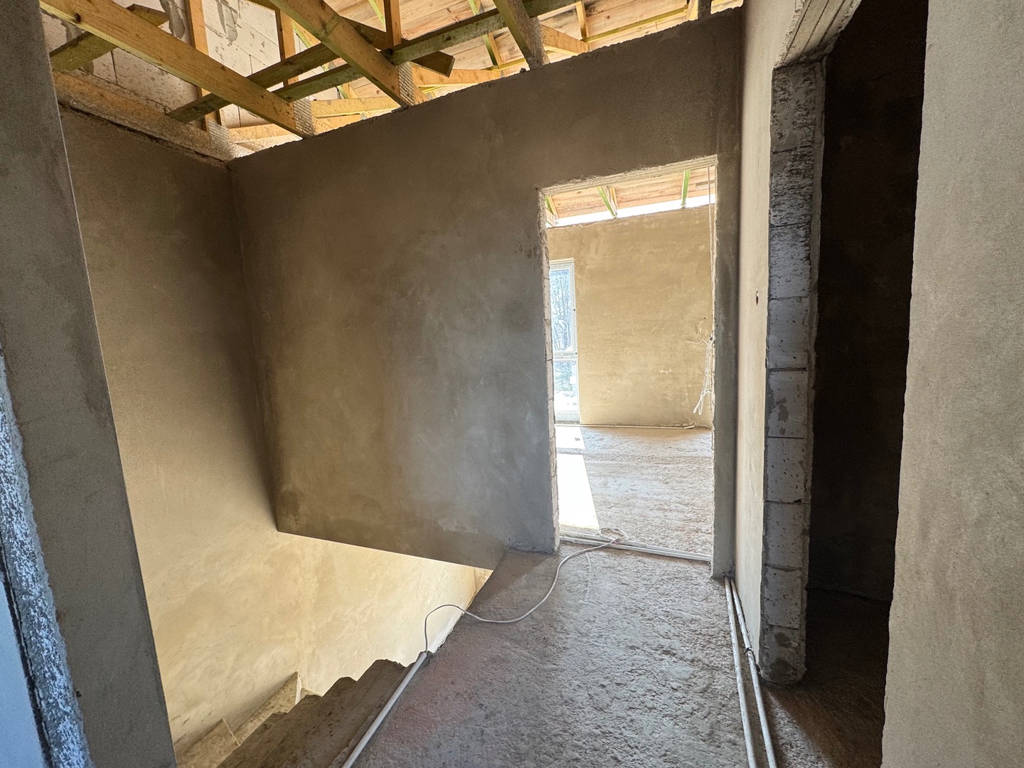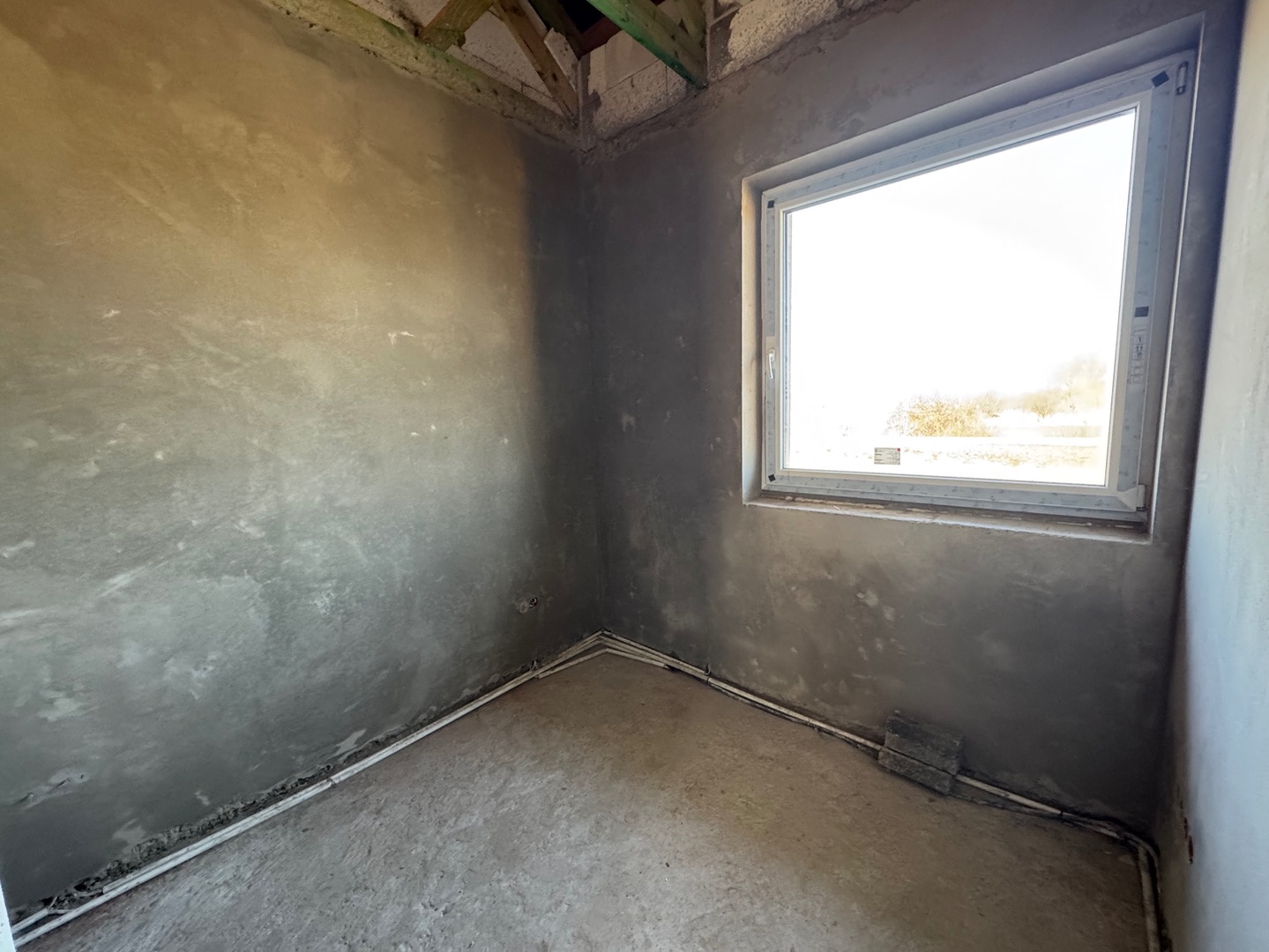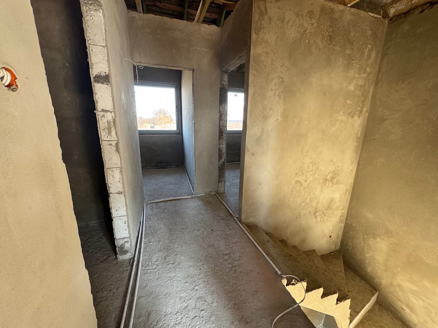 Na piętrze dostępne są: sypialnia główna z garderobą, dwie mniejsze sypialnie oraz łazienka z miejscem na toaletę, umywalkę oraz prysznic.