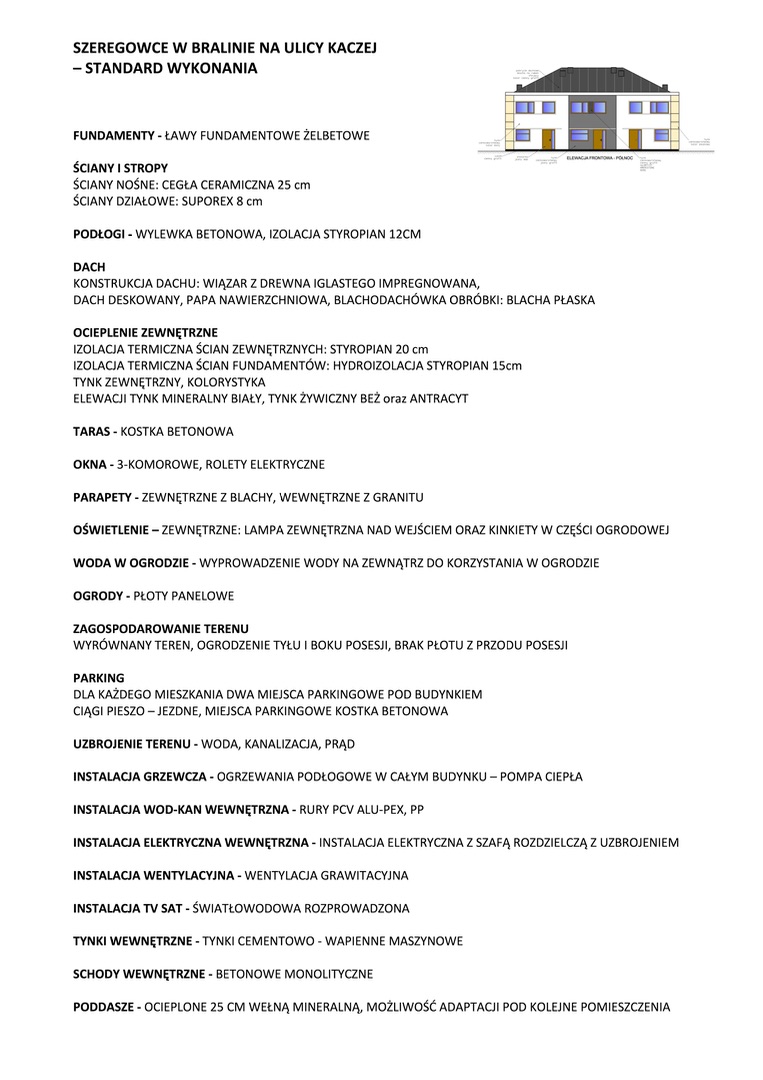 Do każdego budynku DWA MIEJSCA POSTOJOWE od frontu. Parkingi wliczone są w cenę.