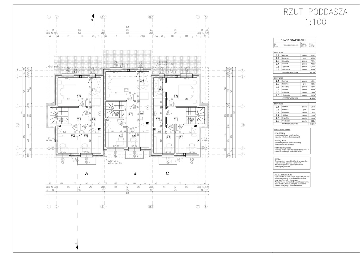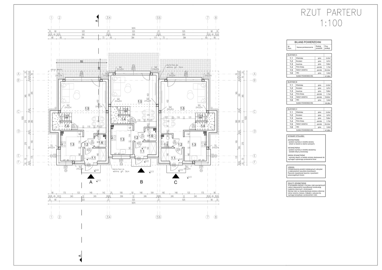 Budynki A oraz C mają odbicie lustrzane wnętrz.